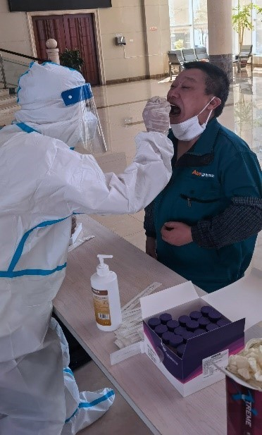 為確保此次核酸檢測工作安全高效有序進行,公司疫情防控辦公室按照疫情防控要求,積極做好檢測點布置、人員分流安排等各項前期準備工作。上午9時30分,在公司的統一組織下,全體員工積極參與、有序排隊,逐一進行了咽拭子采集工作。檢測過程中,員工嚴格按照疫情防控要求,全程佩戴口罩,保持安全間隔距離依次進行采樣。員工采集完畢后有序離場,避免人員聚集。截至上午11點,公司參與核酸檢測員工300人。本次核酸檢測工作整體迅速、有序、高效。